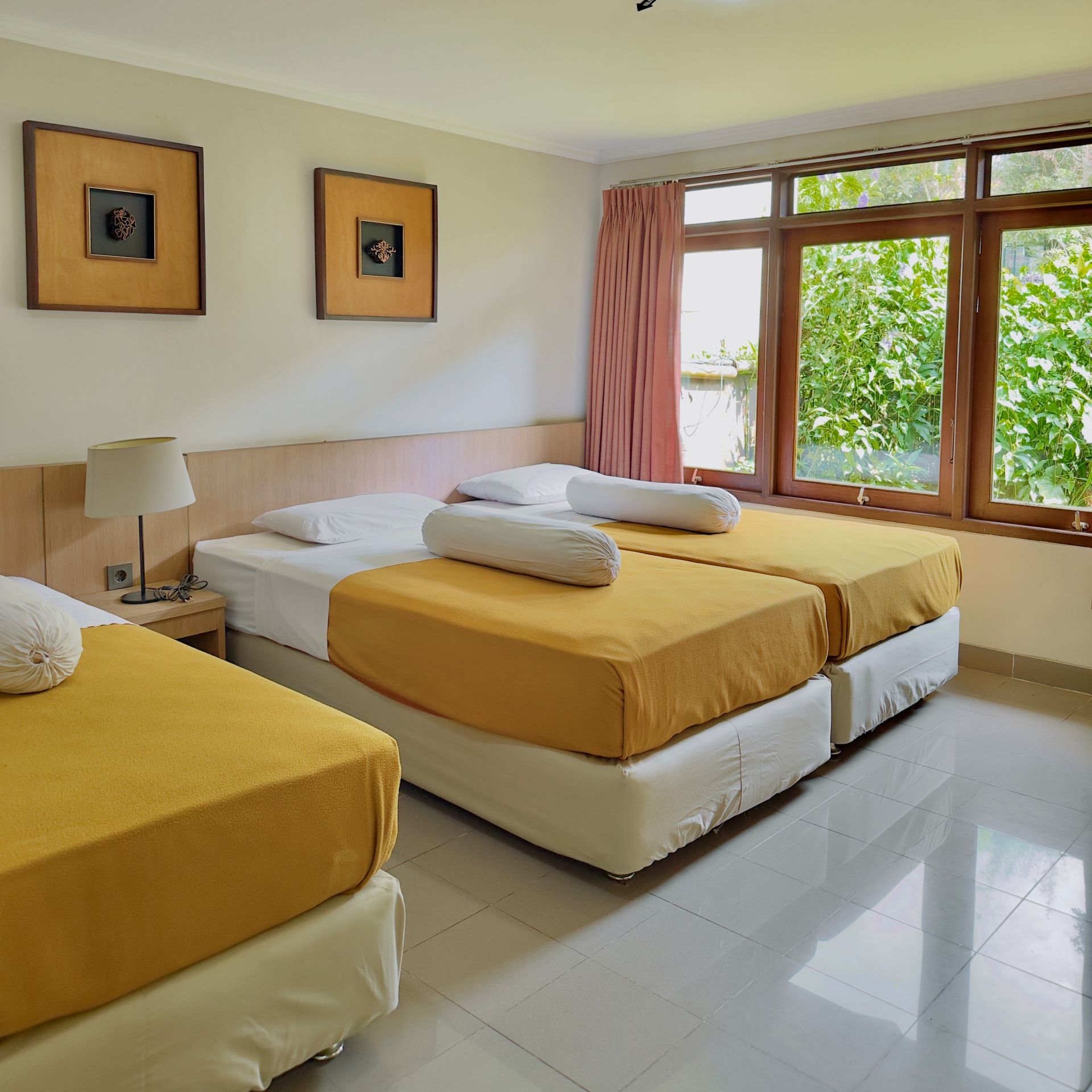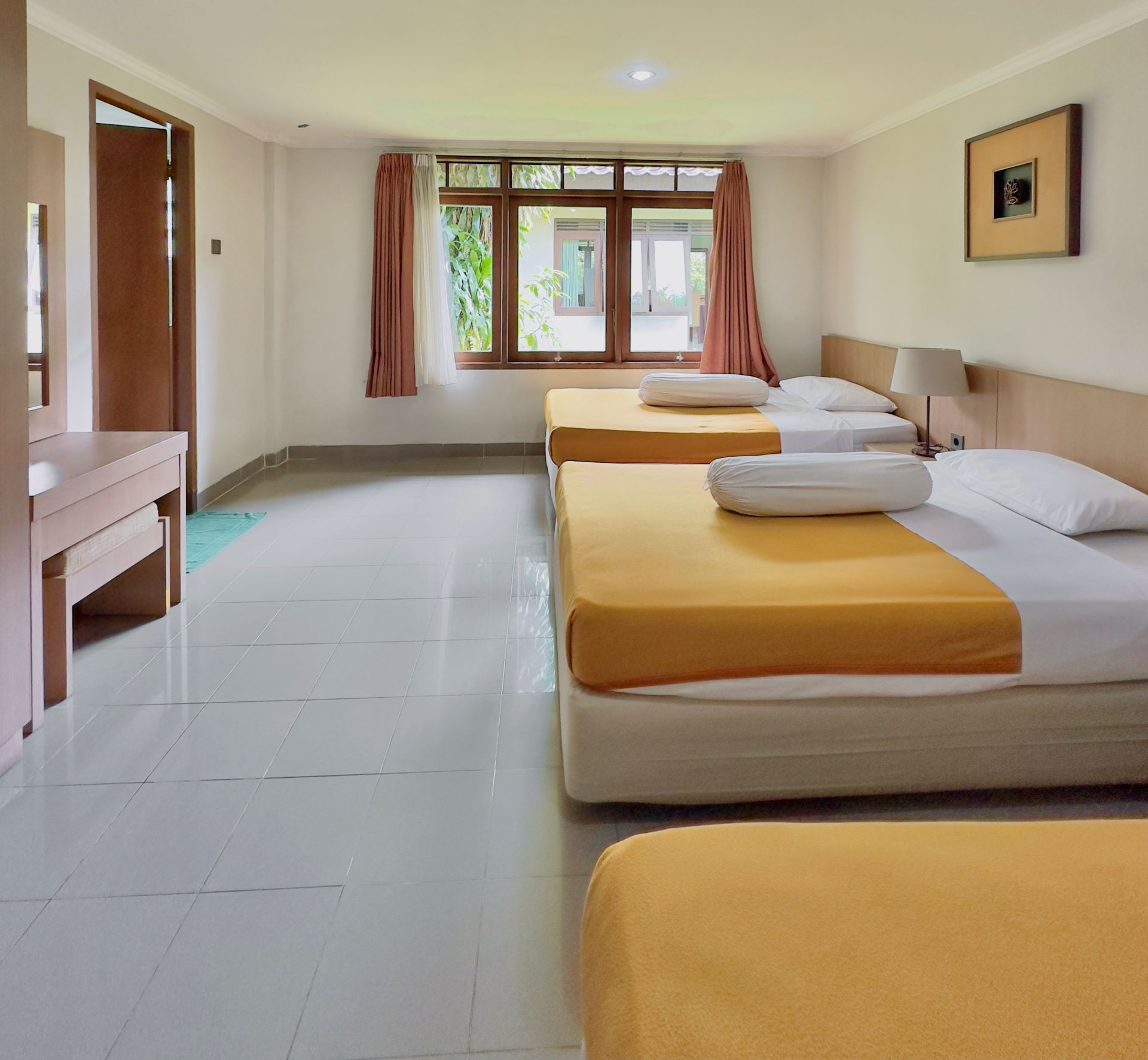 Amenities: Bathtub/shower dengan air panas, Dapur dengan kompor gas, rice cooker, dan peralatan memasak lainnya, Dispenser air minum, LCD TV dengan siaran lokal dan in-house video, Lemari pakaian, Lemari pendingin, Meja makan, Meja rias, Pesawat telepon