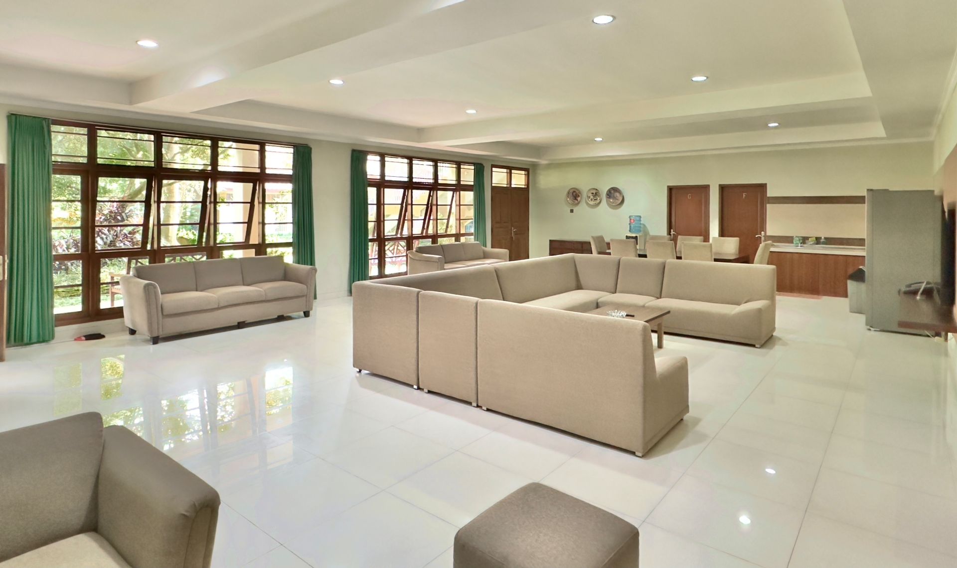 Amenities: Bathtub/shower dengan air panas, Dapur dengan kompor gas, rice cooker, dan peralatan memasak lainnya, Dispenser air minum, LCD TV dengan siaran lokal dan in-house video, Lemari pakaian, Lemari pendingin, Meja makan, Meja rias, Pesawat telepon