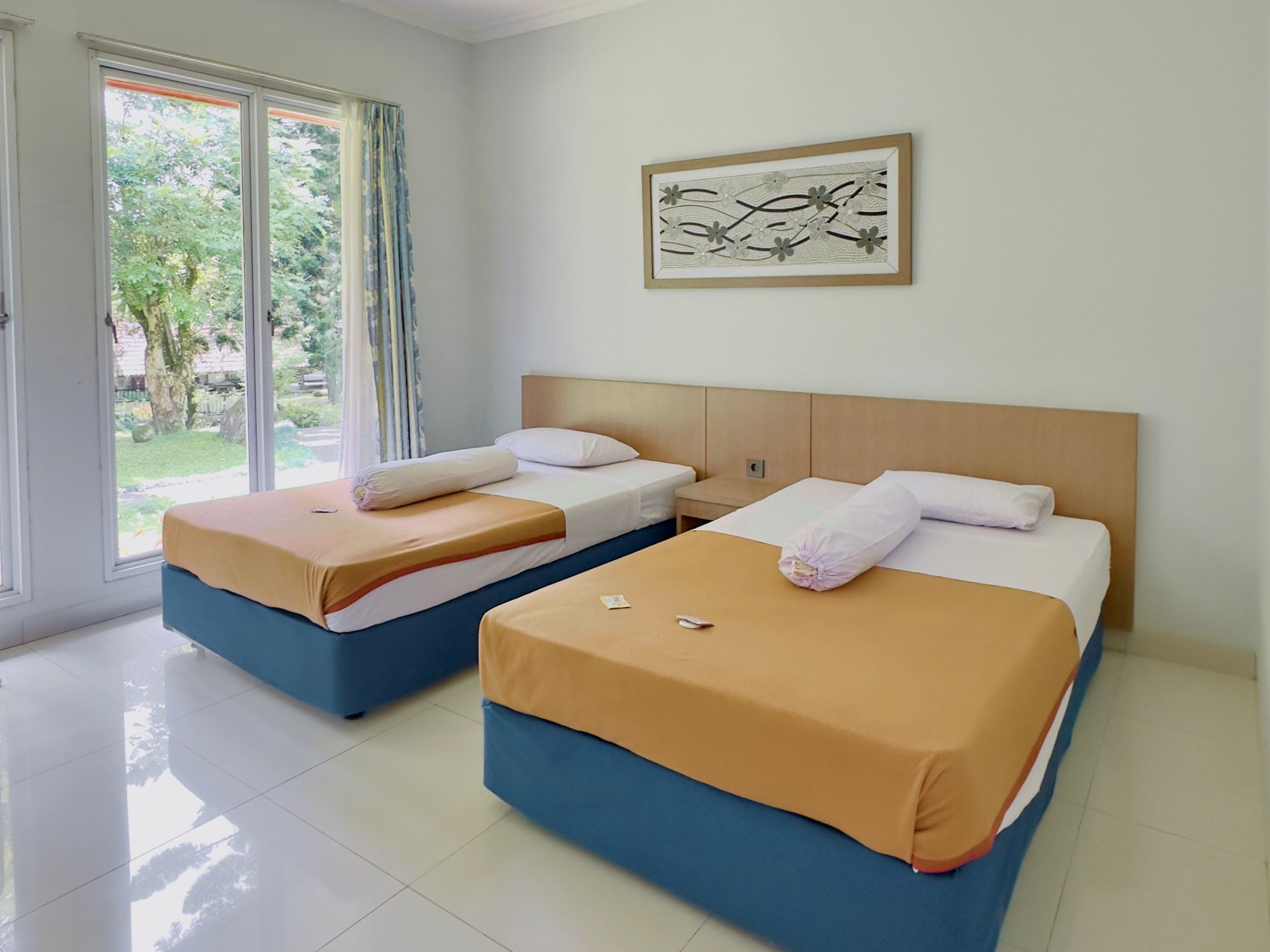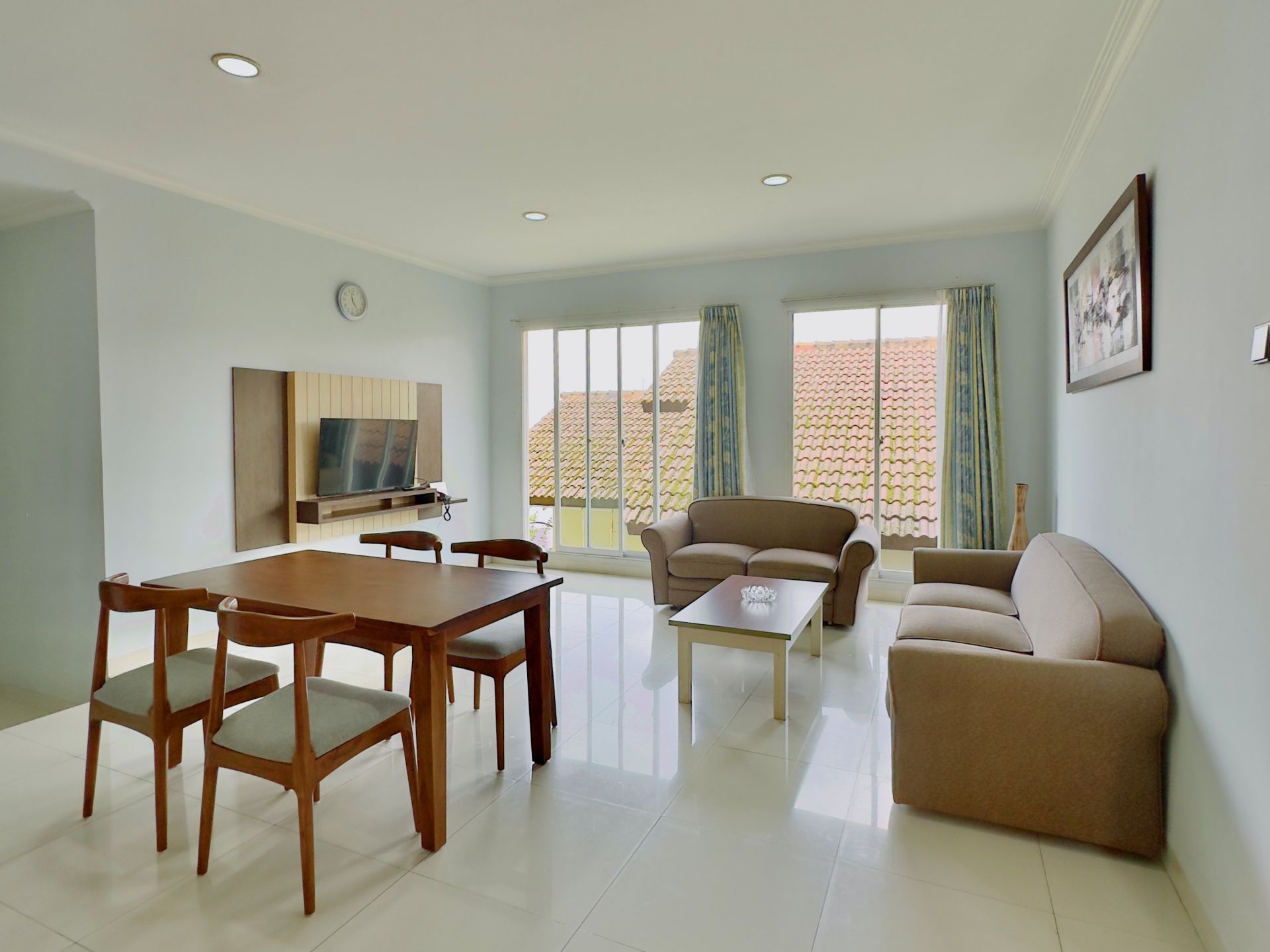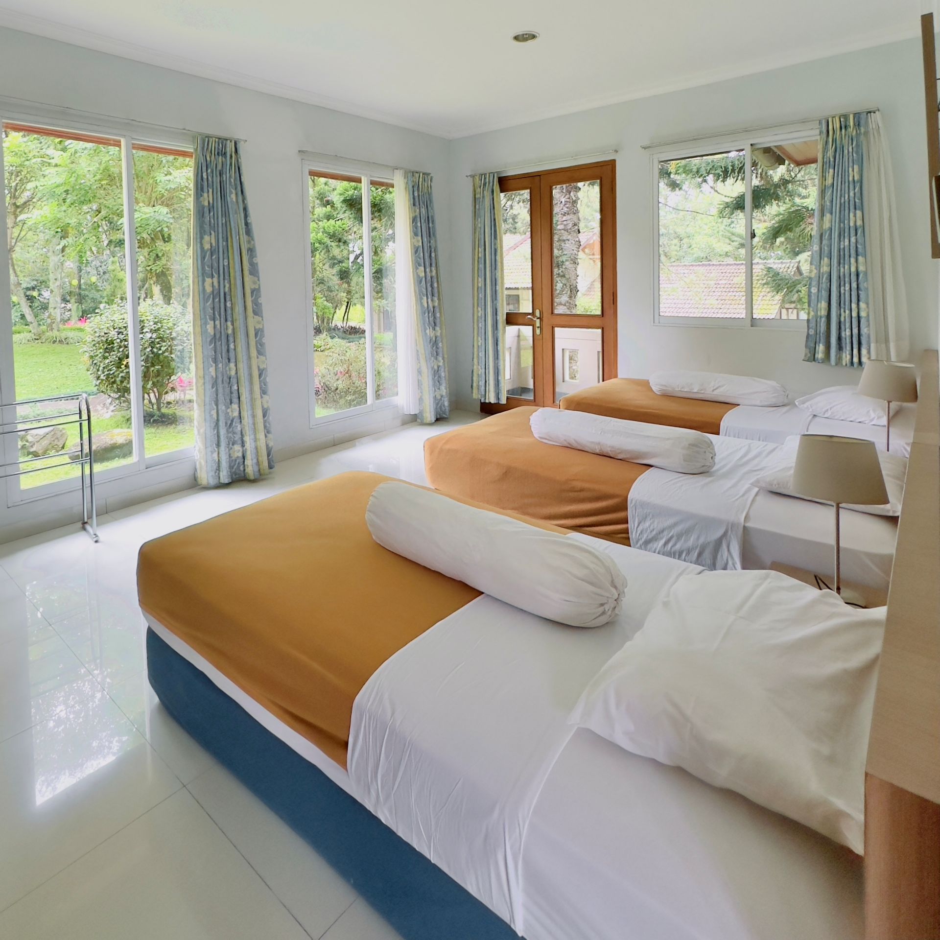 Amenities: Bathtub/shower dengan air panas, Dapur dengan kompor gas, rice cooker, dan peralatan memasak lainnya, Dispenser air minum, LCD TV dengan siaran lokal dan in-house video, Lemari pakaian, Lemari pendingin, Meja makan, Meja rias, Pesawat telepon