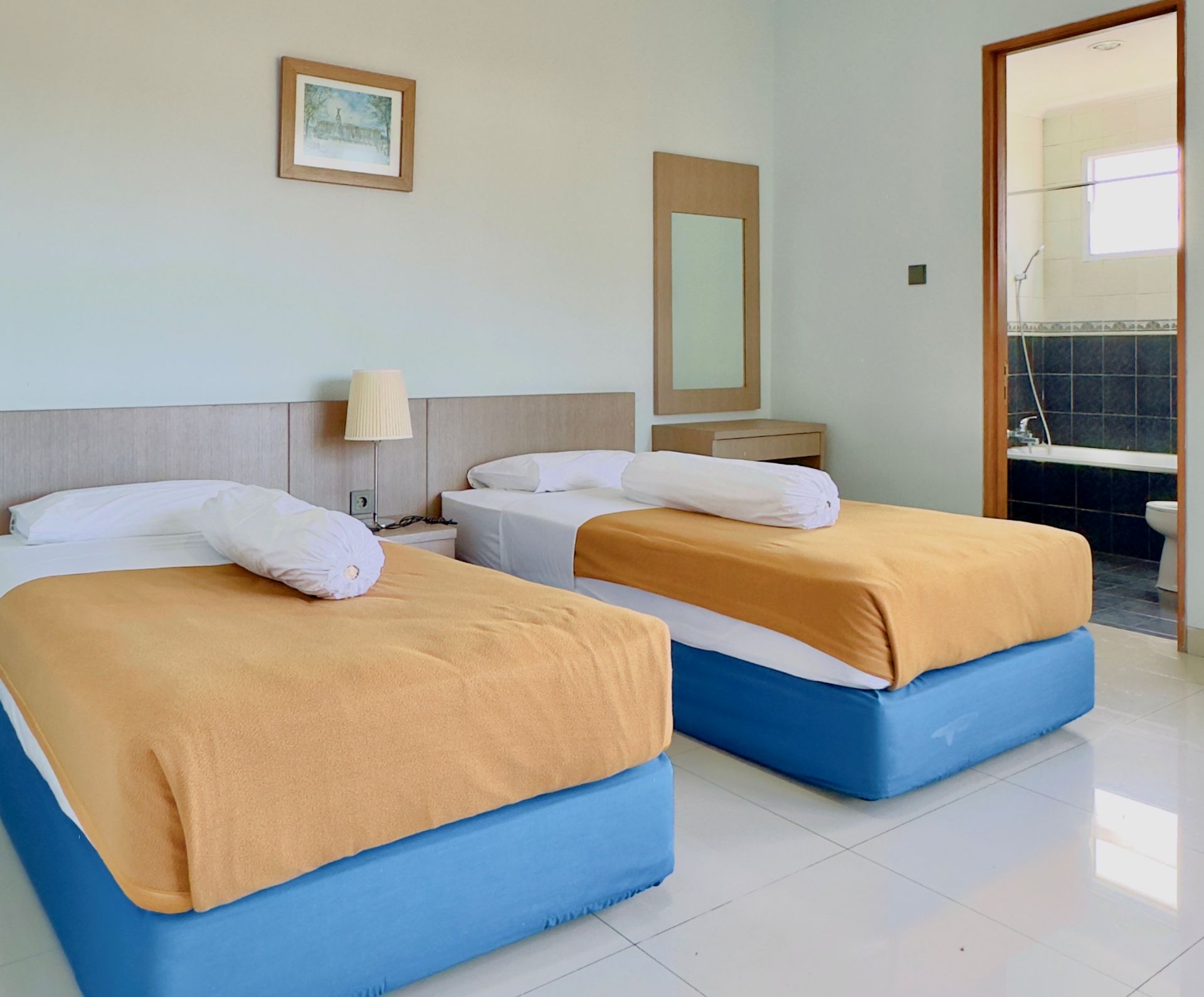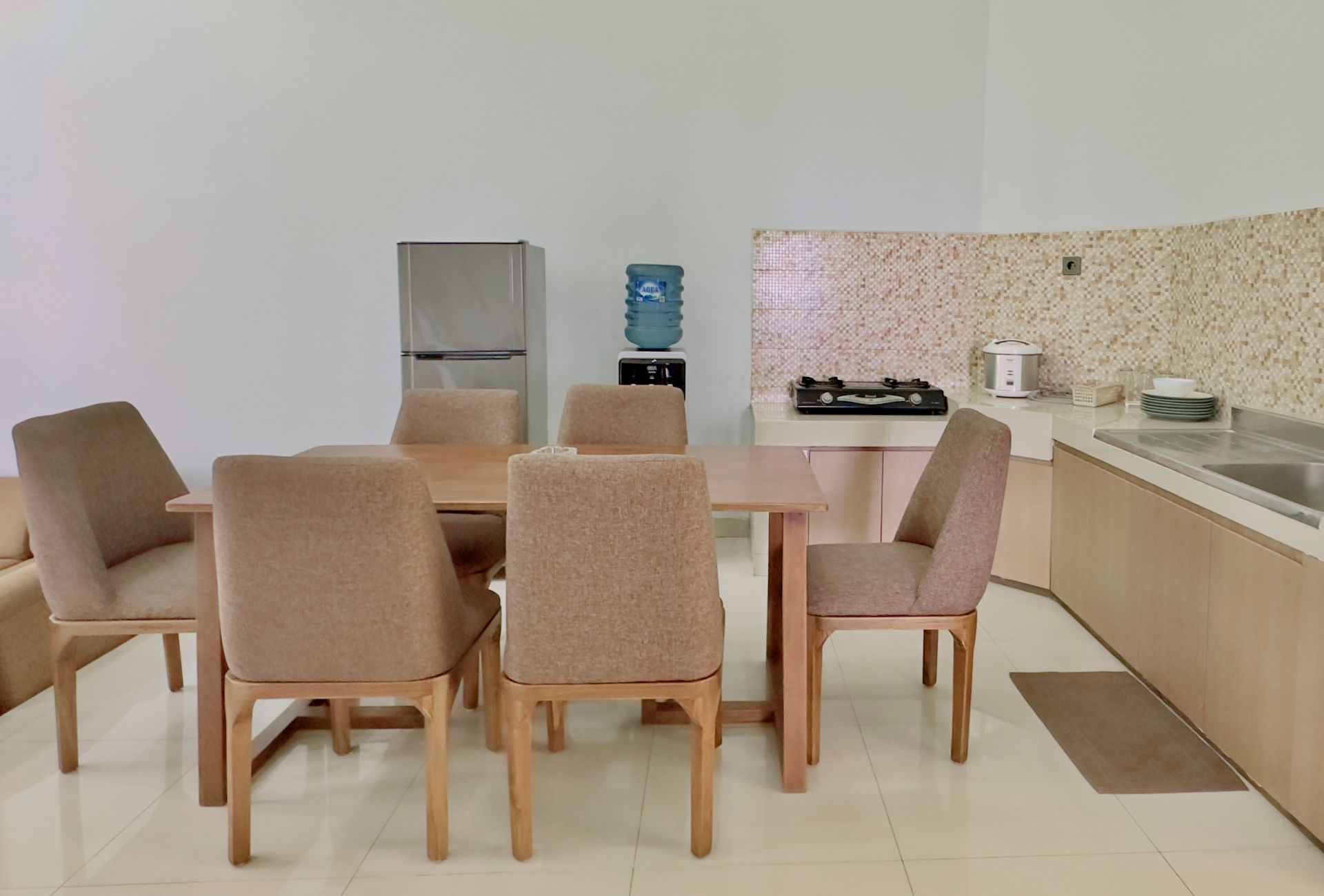 Amenities: Bathtub/shower dengan air panas, Dapur dengan kompor gas, rice cooker, dan peralatan memasak lainnya, Dispenser air minum, LCD TV dengan siaran lokal dan in-house video, Lemari pakaian, Lemari pendingin, Meja makan, Meja rias, Pesawat telepon