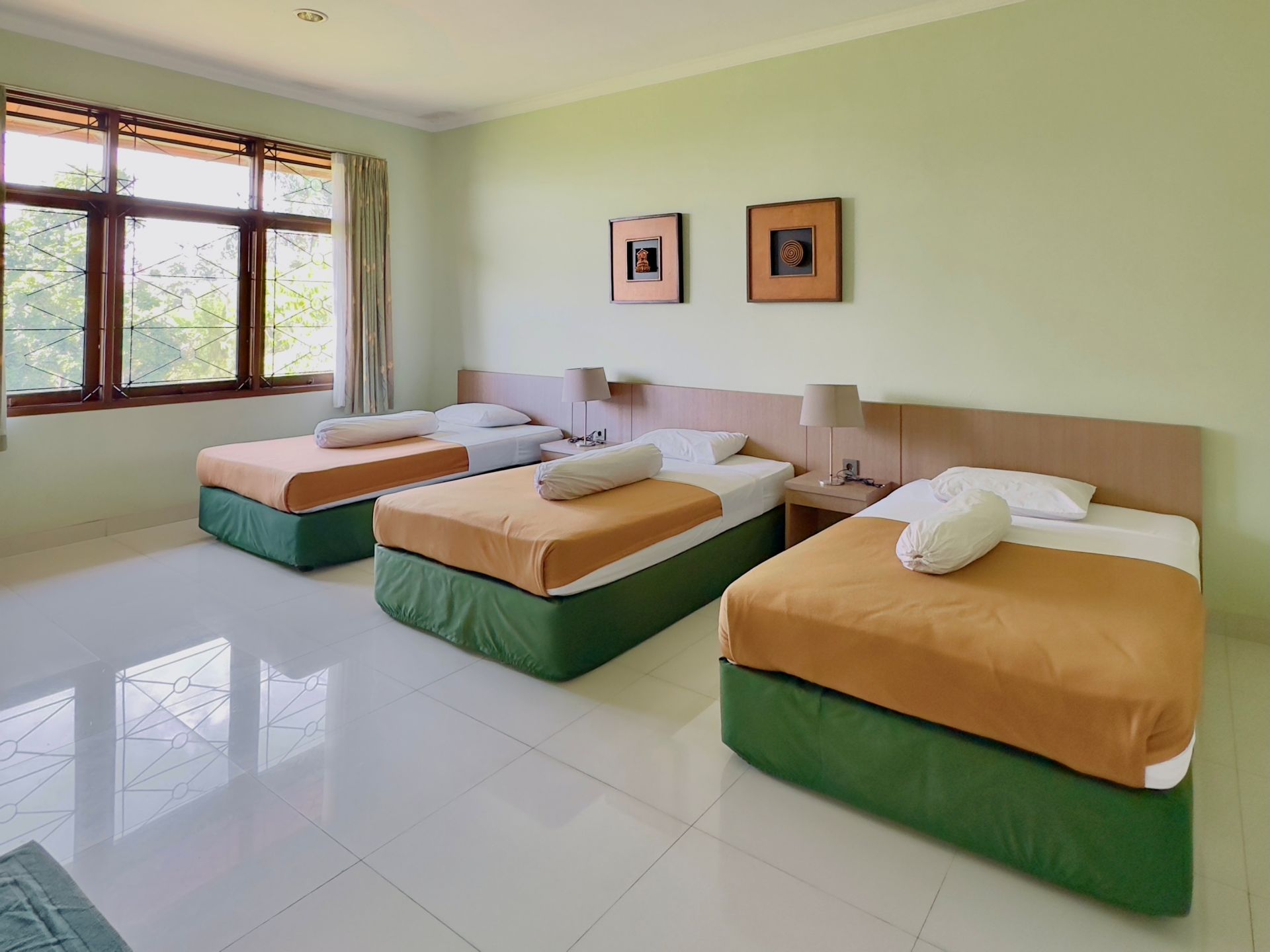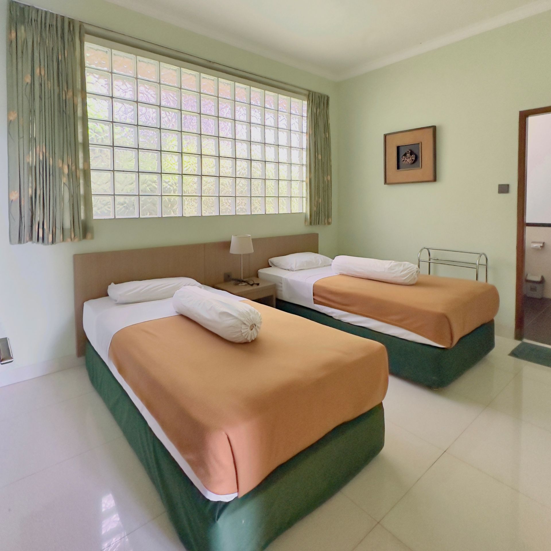 Amenities: Bathtub/shower dengan air panas, Dapur dengan kompor gas, rice cooker, dan peralatan memasak lainnya, Dispenser air minum, LCD TV dengan siaran lokal dan in-house video, Lemari pakaian, Lemari pendingin, Meja makan, Meja rias, Pesawat telepon