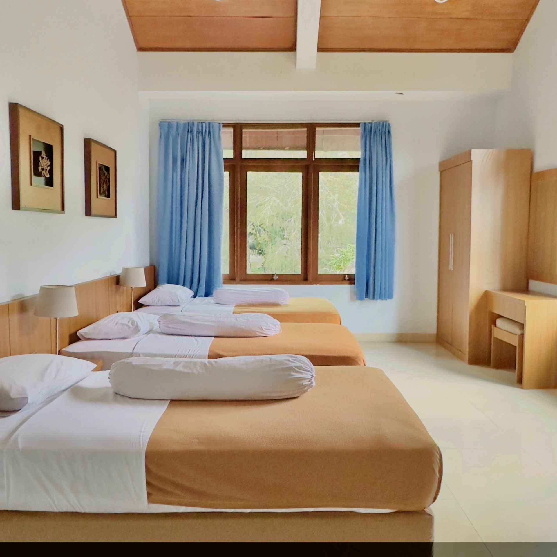 Amenities: Bathtub/shower dengan air panas, Dapur dengan kompor gas, rice cooker, dan peralatan memasak lainnya, Dispenser air minum, LCD TV dengan siaran lokal dan in-house video, Lemari pakaian, Lemari pendingin, Meja makan, Meja rias, Pesawat telepon