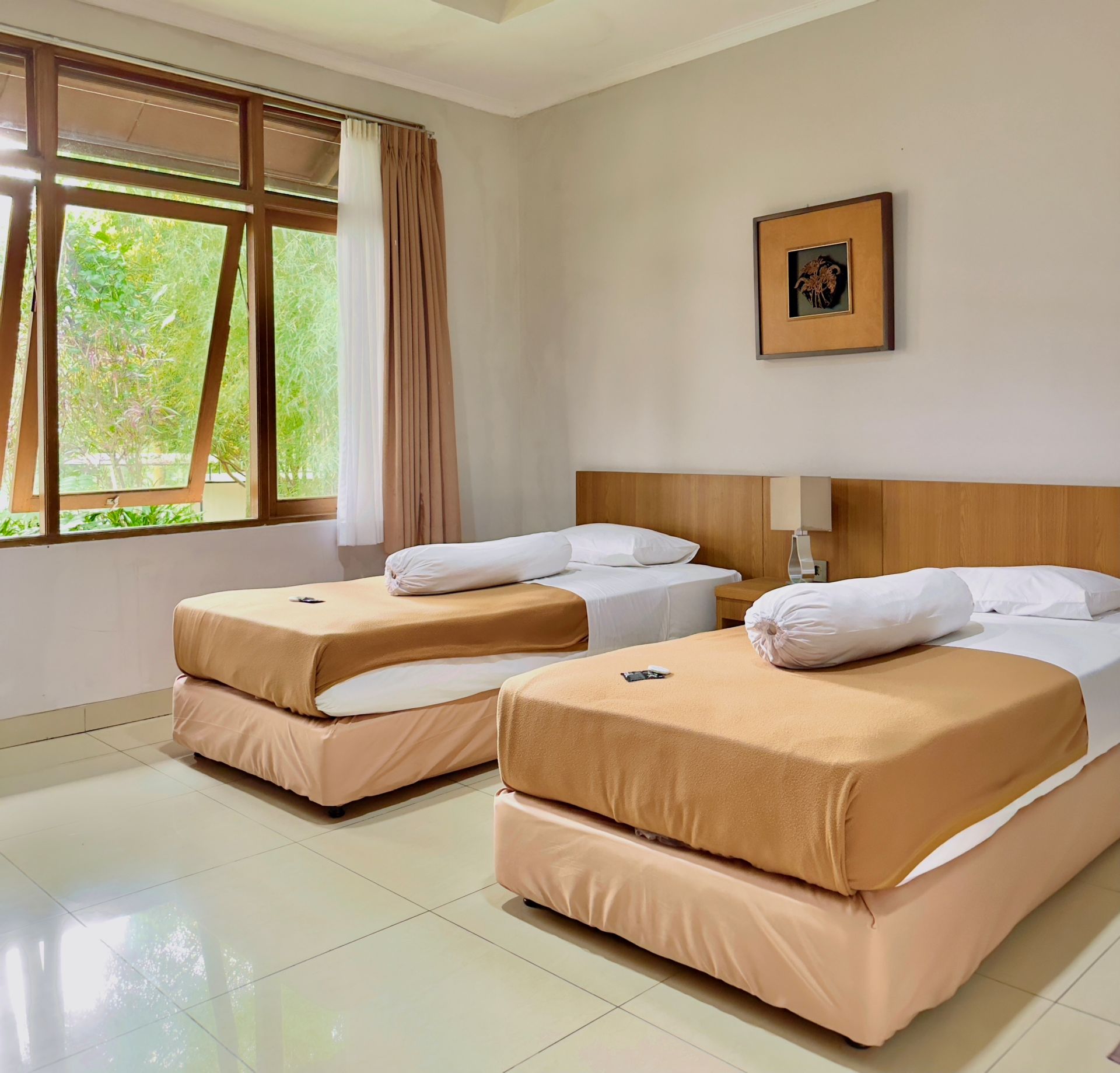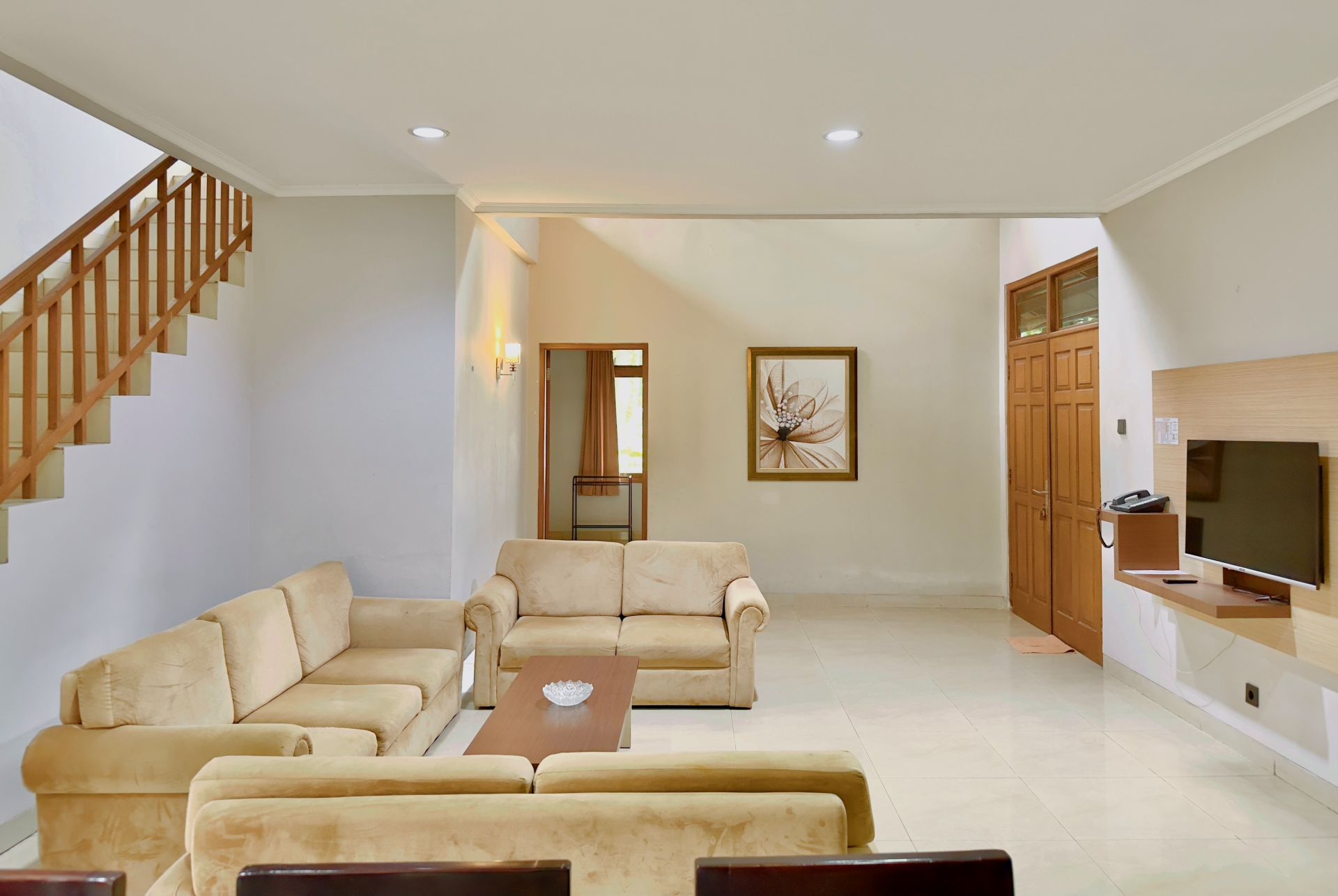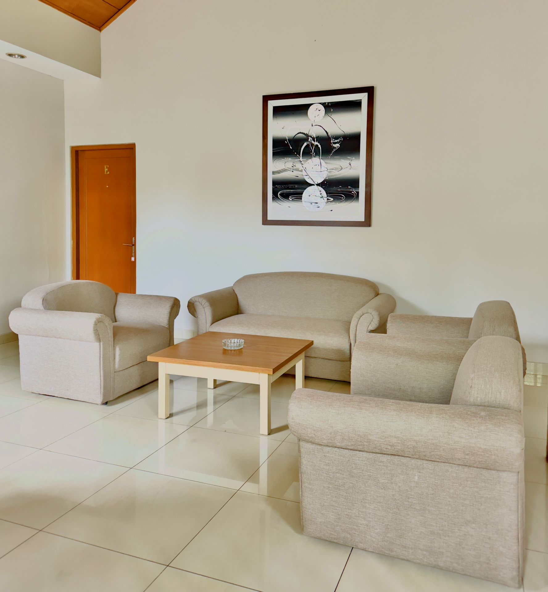 Amenities: Bathtub/shower dengan air panas, Dapur dengan kompor gas, rice cooker, dan peralatan memasak lainnya, Dispenser air minum, LCD TV dengan siaran lokal dan in-house video, Lemari pakaian, Lemari pendingin, Meja makan, Meja rias, Pesawat telepon