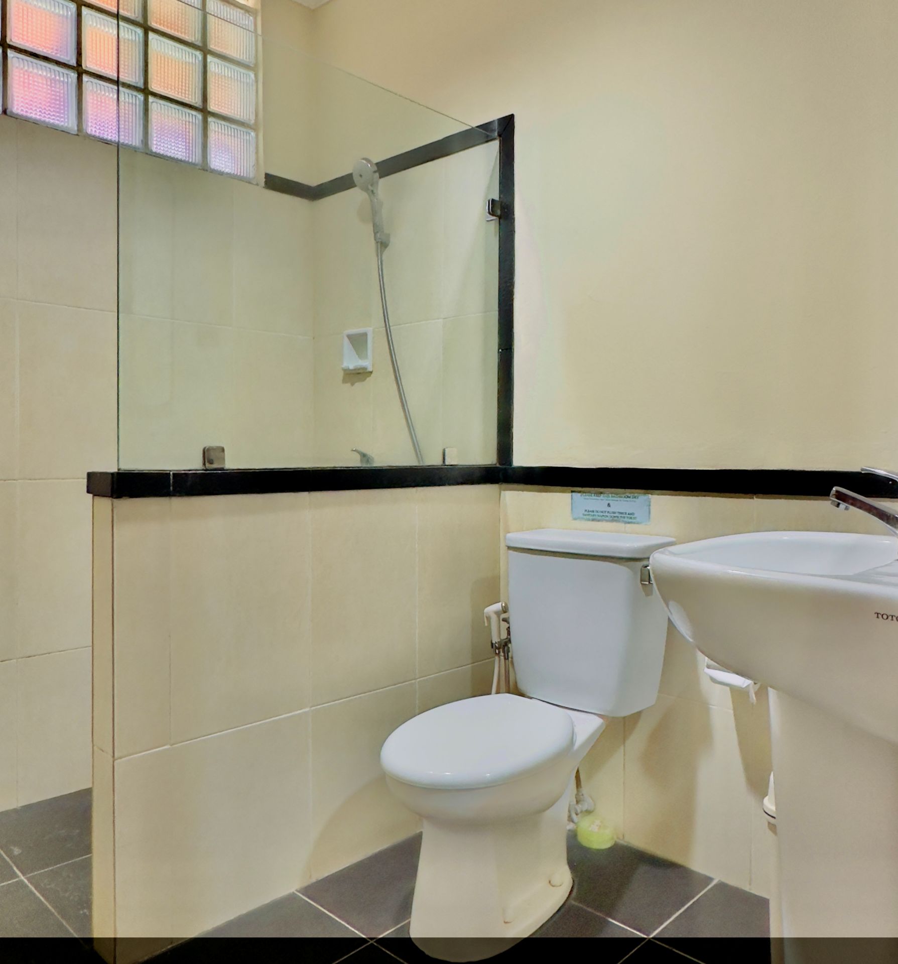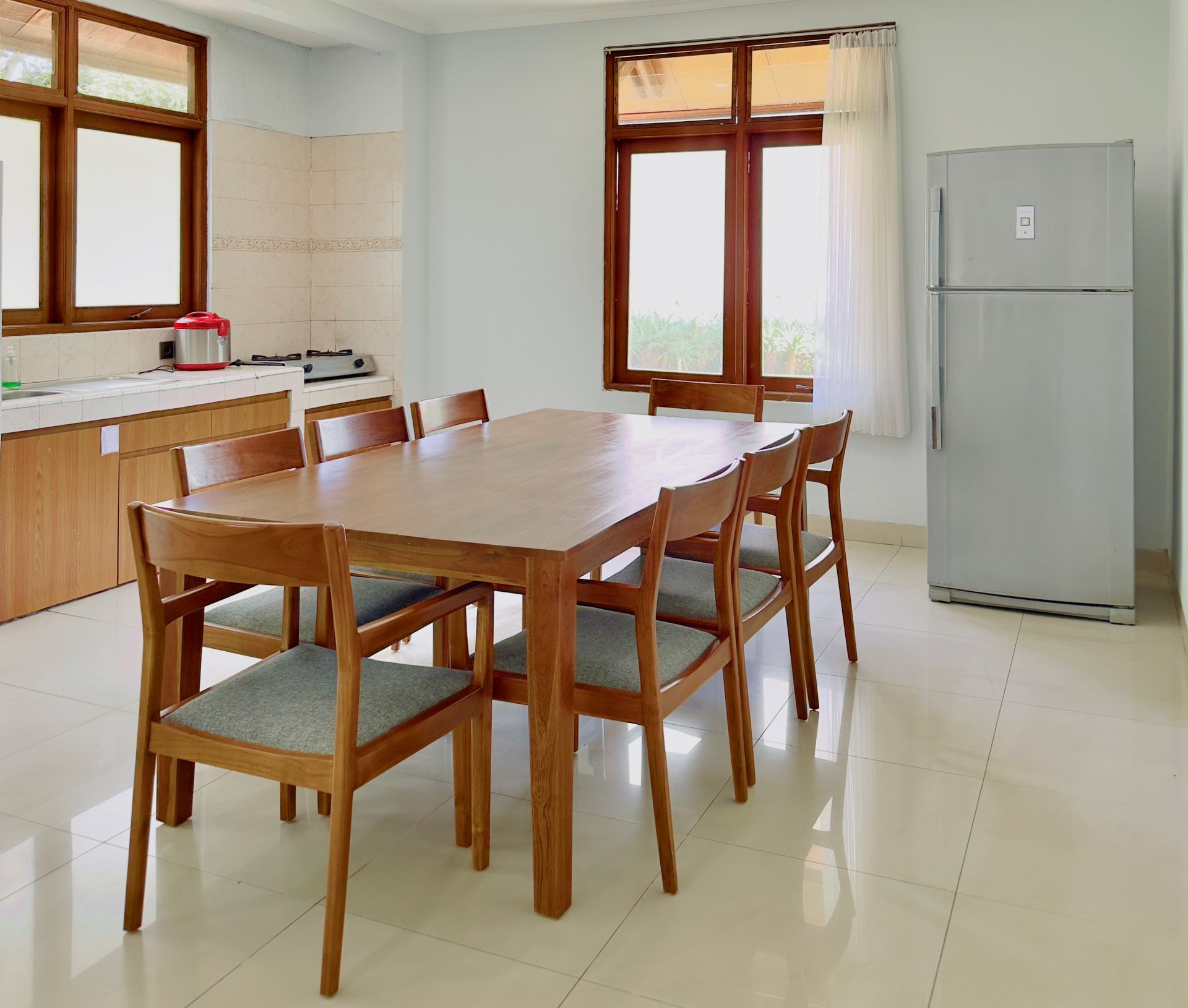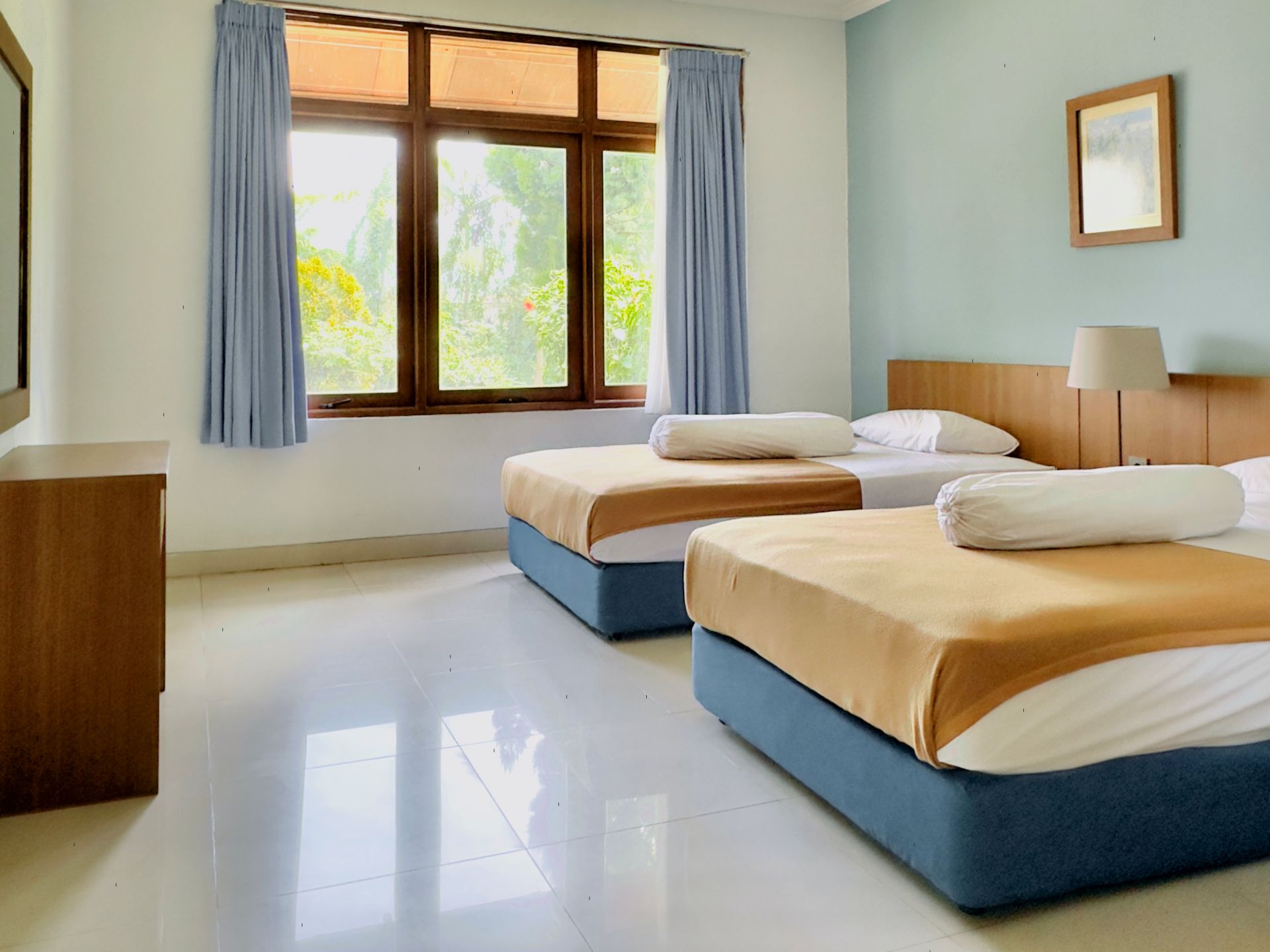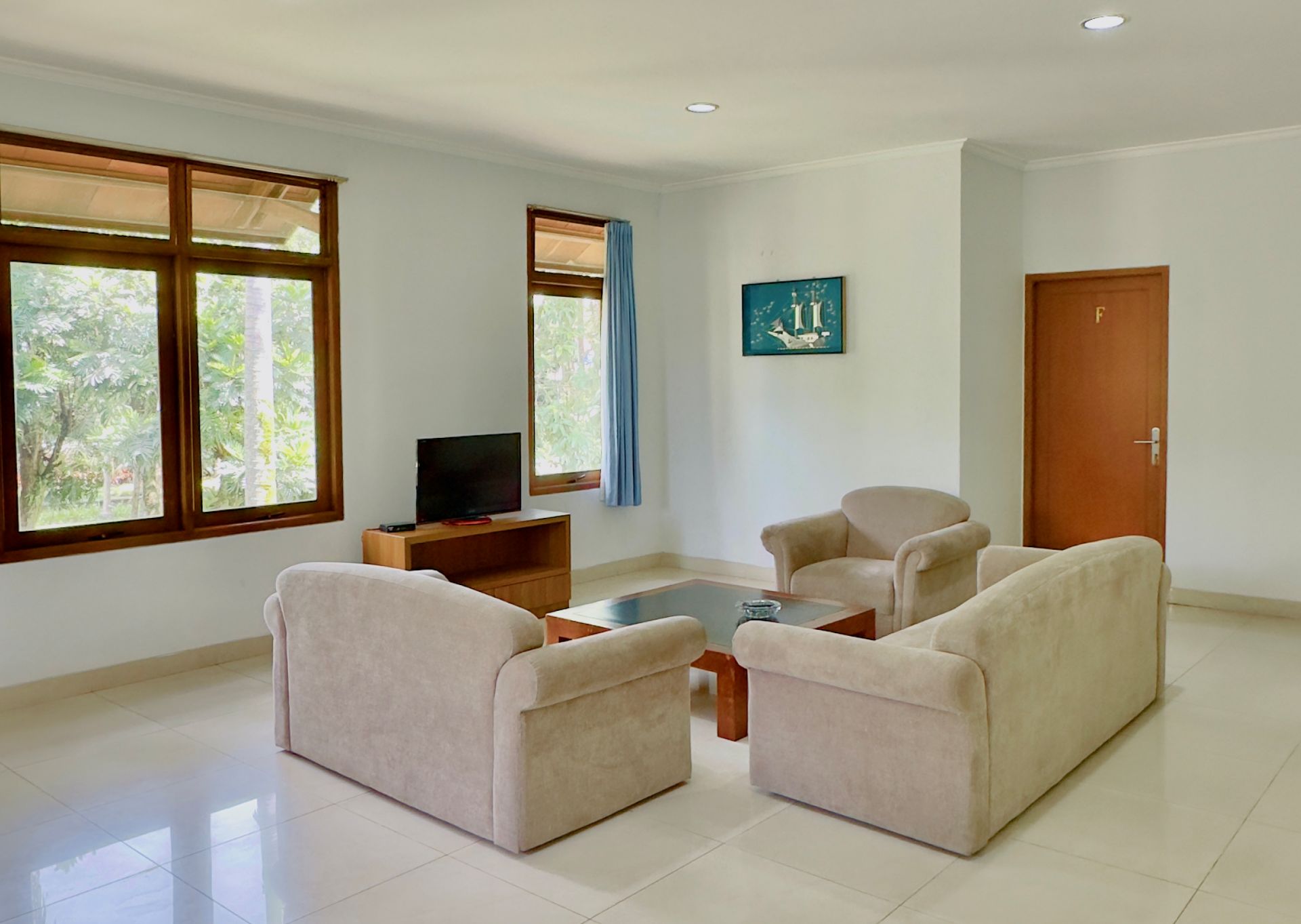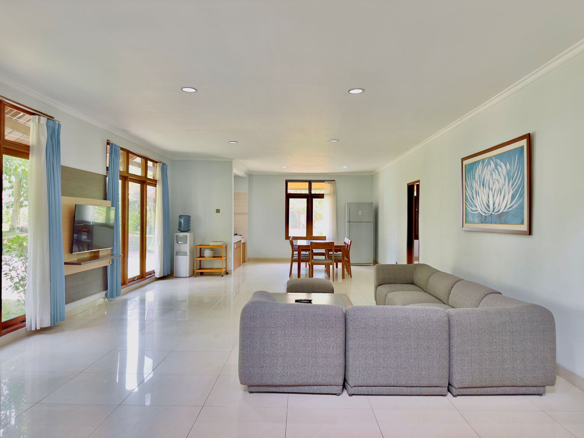 Amenities: Bathtub/shower dengan air panas, Dapur dengan kompor gas, rice cooker, dan peralatan memasak lainnya, Dispenser air minum, LCD TV dengan siaran lokal dan in-house video, Lemari pakaian, Lemari pendingin, Meja makan, Meja rias, Pesawat telepon