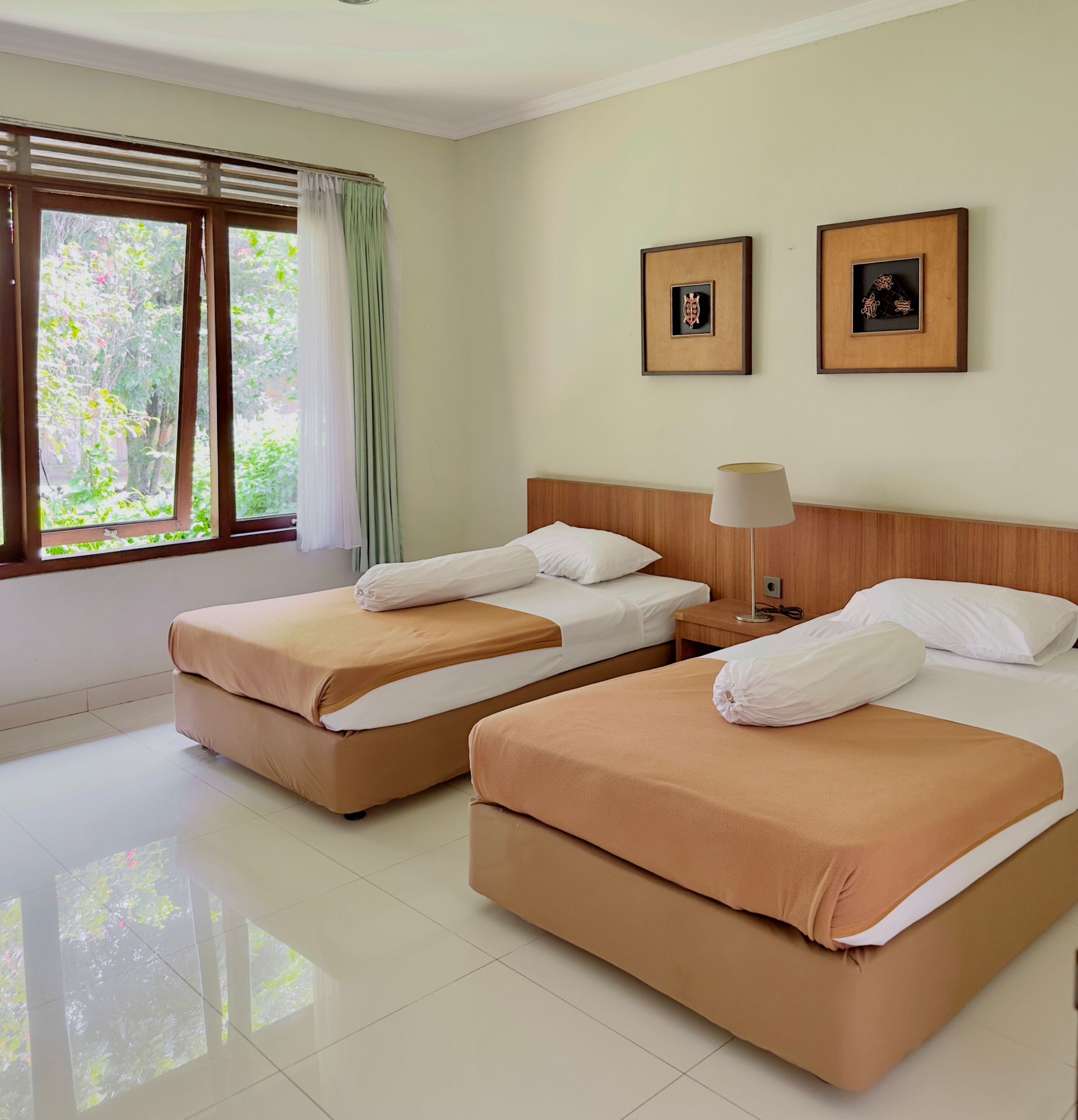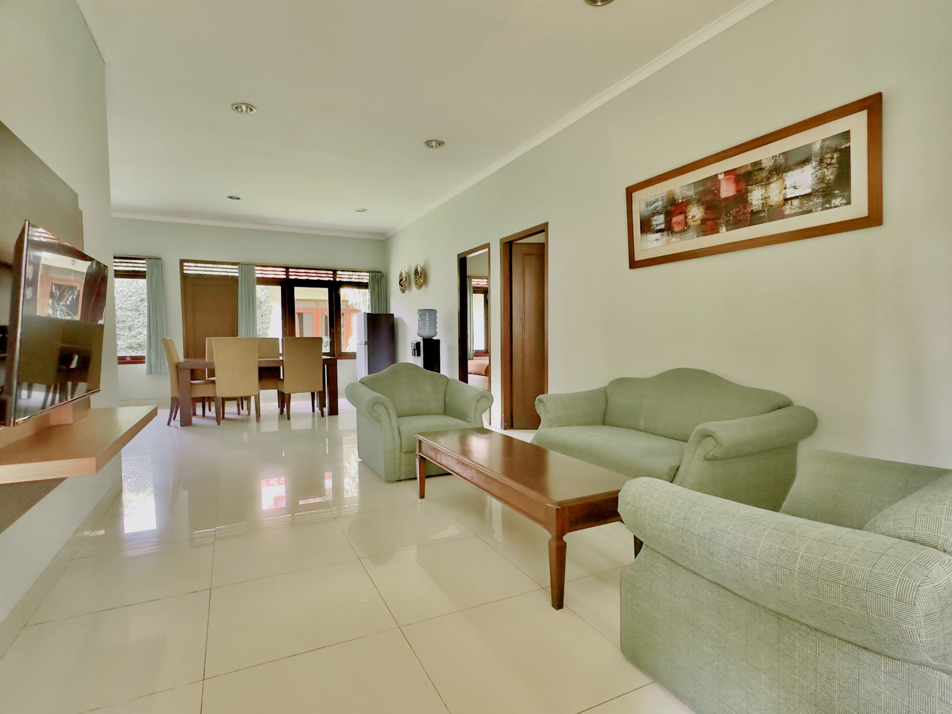 Amenities: Bathtub/shower dengan air panas, Dapur dengan kompor gas, rice cooker, dan peralatan memasak lainnya, Dispenser air minum, LCD TV dengan siaran lokal dan in-house video, Lemari pakaian, Lemari pendingin, Meja makan, Meja rias, Pesawat telepon