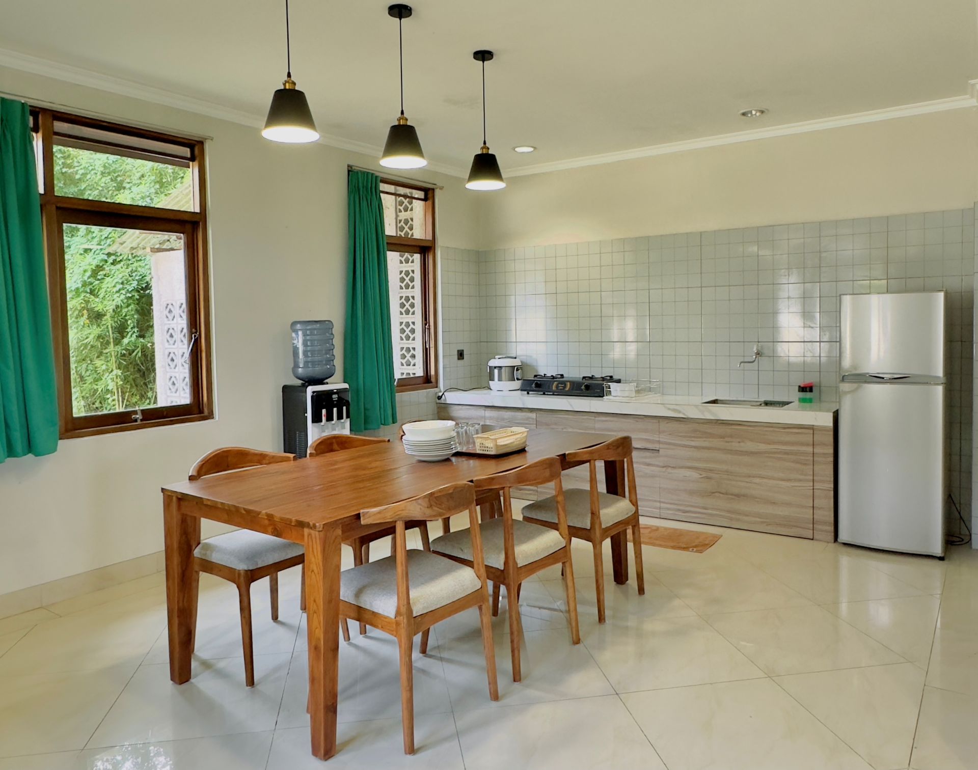 Amenities: Bathtub/shower dengan air panas, Dapur dengan kompor gas, rice cooker, dan peralatan memasak lainnya, Dispenser air minum, LCD TV dengan siaran lokal dan in-house video, Lemari pakaian, Lemari pendingin, Meja makan, Meja rias, Pesawat telepon